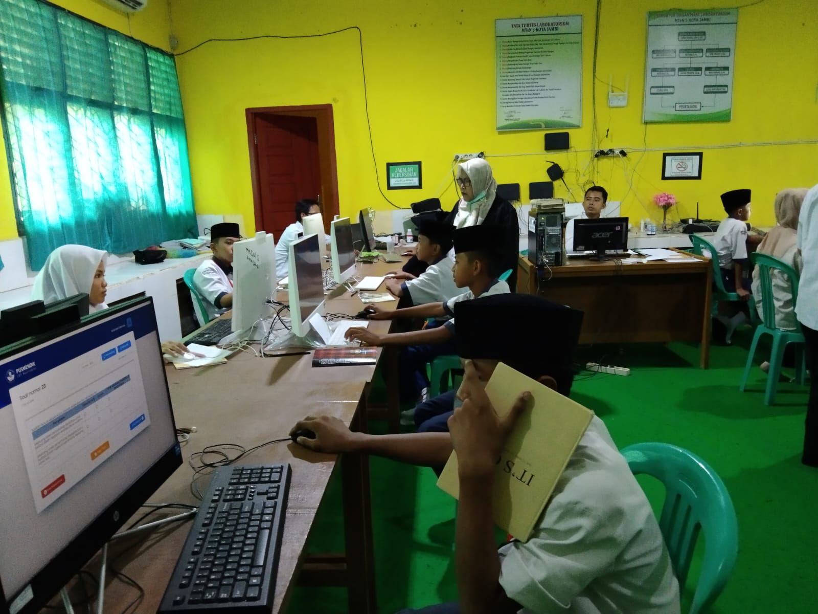 Kota Jambi,Selasa, (10/09/2024), Pengawas MTsN 5 Kota Jambi , Ibu Marliani selaku pengawas MTs N 5 Kota Jambi, melakukan Monitoring terhadap pelaksanaan Asesmen Nasional Berbasis Komputer.Dengan didampingi Waka Bidang Humas , ibu Marliani, M.Pd.I memantau pelaksanaan ANBK yang berlangsung dilaboratorium MTs N 5.