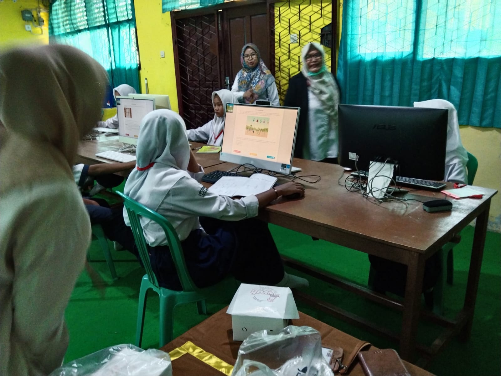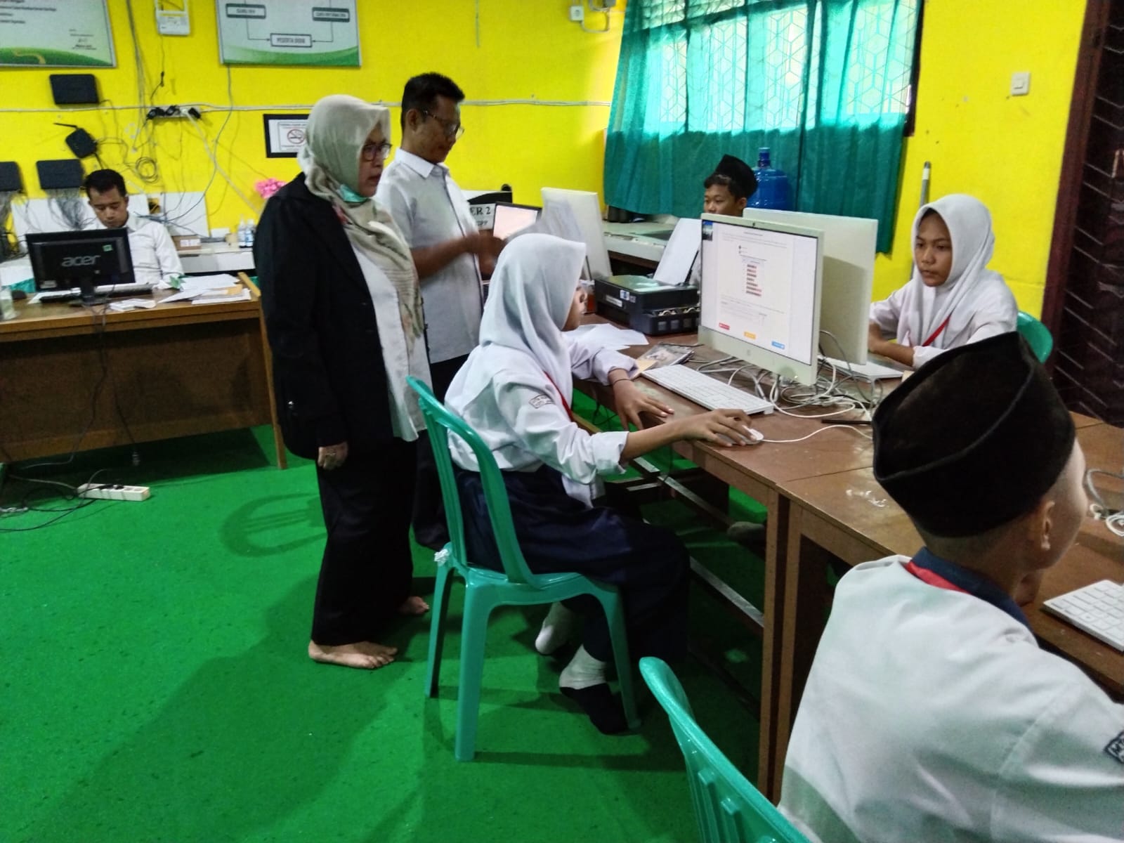 Dalam pantauan tim Humas telihat ibu pengawas mengecek pelaksanaan Asesmen Nasional Berbasis Komputer ini,dalam kunjungannya beliau menyampaikan kepada peserta didik bahwa hasil Asesmen ini akan menjadi raport bagi Madrasah,oleh karnanya diharapkan anak-anak yang mengikuti Asesmen Nasional Berbasis Komputer ini betu-lbetul serius, jangan hanya asal mengklik jawaban tapi harus dibaca dan dipahami betul soalnya.