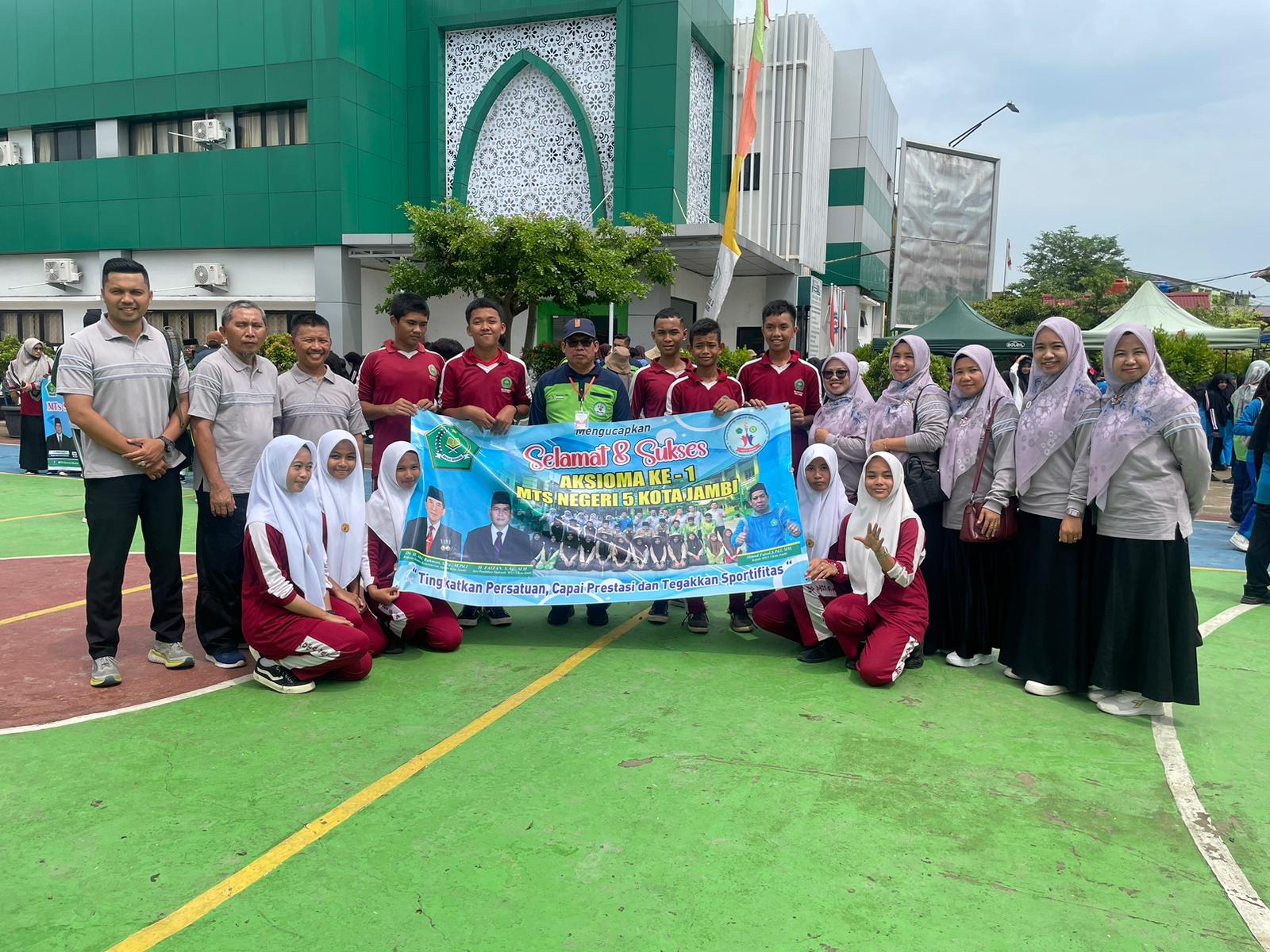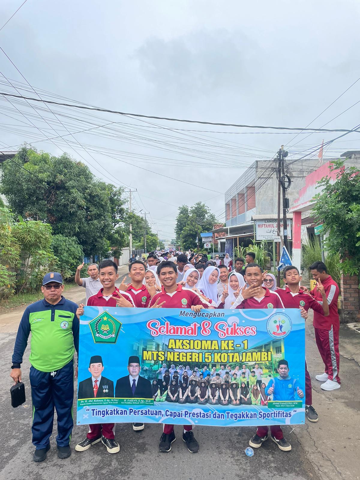 Kota Jambi, (MTs N 5 KOTA JAMBI), MTsN 5 Kota Jambi mengikuti kegiatan pawai pembukaan . Ajang Kreasi Seni dan Olahraga bagi Madrasah ( AKSIOMA ) ke-1. Ajang Kreasi Seni dan Olahraga bagi Madrasah ( AKSIOMA ) ini, merupakan kegiatan pertama bagi Madrasah Tsanawiyah se- Kota Jambi,baik Negeri maupun Swasta. Sebanyak 35 Madrasah mengikuti kegiatan Ajang Kompetensi Seni dan Olahraga Madrasah ( AKSIOMA ) ini,Pawai dimulai dari masjid Assa’adah Kota Jambi dan berakhir di MTsN 2 Kota Jambi.