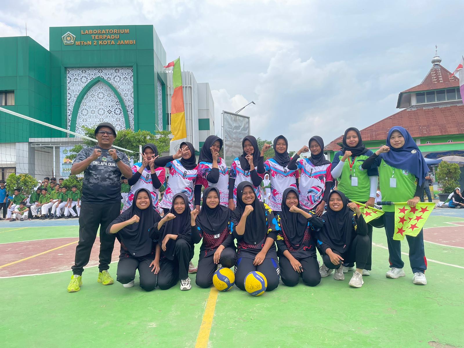 Kota Jambi , ( Kamis, 07 November 2024 ). Dalam kegiatan Ajang Kreasi Seni dan Olahraga Madrasah (AKSIOMA) ke-1 tahun 2024 yang dilaksanakan di MTs N 2 Kota Jambi, MTs N 5 Kota Jambi berhasil meraih juara 1 cabang olahraga Volly Putra dan volly Putri. Pertandingan ini, berlangsung pada hari kamis 07 November 2024.Pertandingan yang luar biasa, tim volly putri berhadapan dengan tim volly ma’had PKP Al-Hidayah Jambi , sementara tim putra berhadapan dengan tim volly MTsN 4 Kota Jambi. Pertandingan dalam kegiatan Ajang Kreasi Seni dan Olahraga Madrasah (AKSIOMA) ini , diikuti oleh sebanyak 32 Madrasah baik Negeri maupun Swasta.