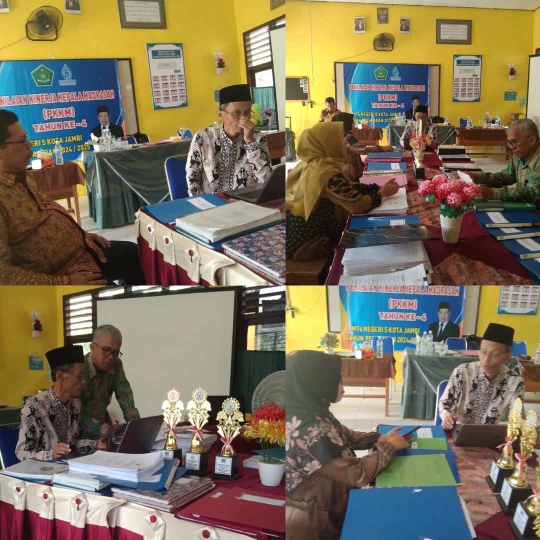 Kota Jambi, (Kamis 12 Desember 2024) Bertempat di MTs N 5 Kota Jambi,berlangsung kegiatan Penilaian Kinerja Kepala Madrasah tahun ke – 4. Penilaian ini merupakan agenda rutin yang dilakukan olehK ementerian Agama setiap satu tahun atau empat tahun seklai.Turut hadir dalam kegiatan ini Kepala Bidang Pendidikan Madrasah Kanwil Kementerian Agama Provinsi Jambi, Kepala Seksi pendidikan Madrasah kementerian Agama Kota Jambi, Tim Penilai Kinerja Kepala Madrasah, Ketua Komite MTs N 5 Kota Jambi , Kepala Madrasah beserta Kepala Tata Usaha MTs N 5 Kota Jambi dan seluruh Majlis Guru MTs N 5 Kota Jambi.