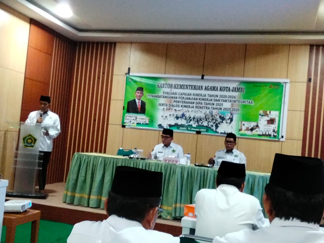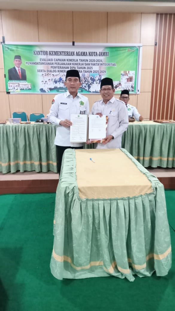 Kota Jambi, ( Selasa,14 Januari 2025 ). Bertempat di Aula Kantor Kementerian Agama Kota Jambi, berlangsung kegiatan Penympaian Laporan Kepala Madrasah, Penandatanganan Perjanjian Kinerja ( Perkin ) dan Fakta Integritas tahun2025.