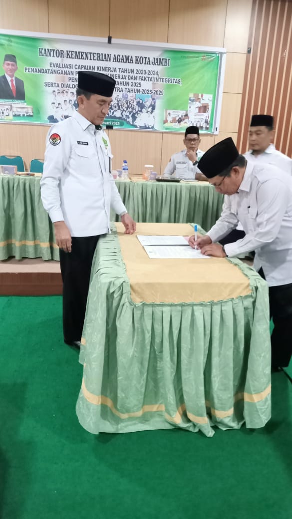 Kegiatan ini diikuti oleh seluruh kepala Seksi, Kepala Madrasah dan Kepala KUA diLingkungan Kantor Kementerian Agama Kota Jambi. Dalam kegiatan ini masing-masing Kepala memaparkan capaian Kinerja dan serapan anggaran nya dari tahun 2020 – 2024. Selain pemaparan Kinerja dan serapan Anggaran para kepala Seksi,Kepala Madrasah dan Kepala KUA juga menandatangani Fakta Integritas , sebagai tanda dimulainya perjanjian kerja tahun 2025.