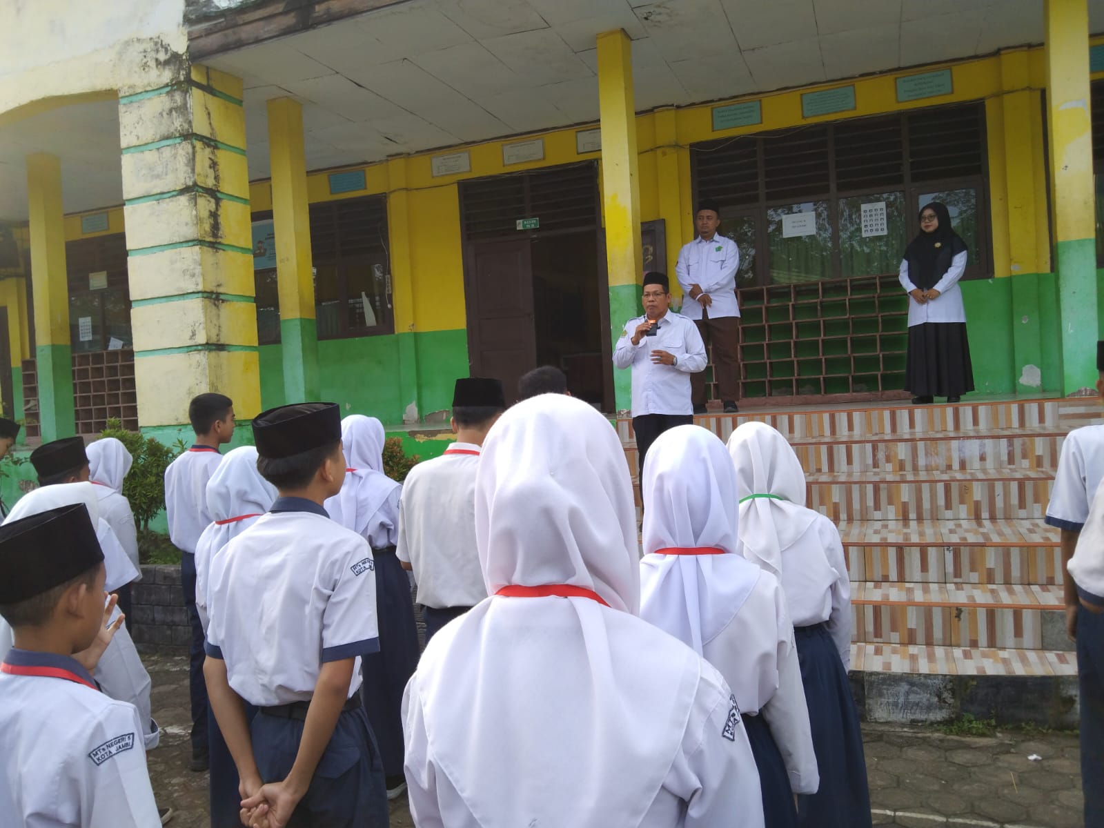 Dihari pertama ujian Madrasah ini diawali dengan mendengarkan pengarahan dari kepala Madrasah,seluruh siswa siswi dikumpulkan dilapangan Madrasah. Dalam pengarahannya kepala Madrasah bapak Ahmad Faisol,S.Pd.I M.M mengatakan , bahwa jika diibaratkan sebuah perjalanan maka anakku semua telah hampir sampai ketujuan,ujian madrasah kali ini merupakan penentu bagi anak-anakku semuanya apakah akan lanjut atau akan terhenti dikelas 9 ini.Oleh karnanya kepala bapak menghimbau kepada seluruh siswa siswi peserta ujian agar belajar dengan sungguh-sungguh dan menjawab pertanyaan dengan penuh kejujuran.Lebih lanjut beliau menyampaiakn bahwa kemungkinan tahun ini adalah tahun terakhir pelaksanaan Ujian Madrasah,karna ditahun yang akan datang kemungkinn besar akan kembali seperti dahulu yaitu Ujian Nasional .Diakhir pengarahan beliau mendoakan semoga anak-anak semua suskes dalam mengikuti ujian madrasah dan suskses dalam mencapai cita-citanya.aamiin yra. (Humas MTsN 5 Kota Jambi ).