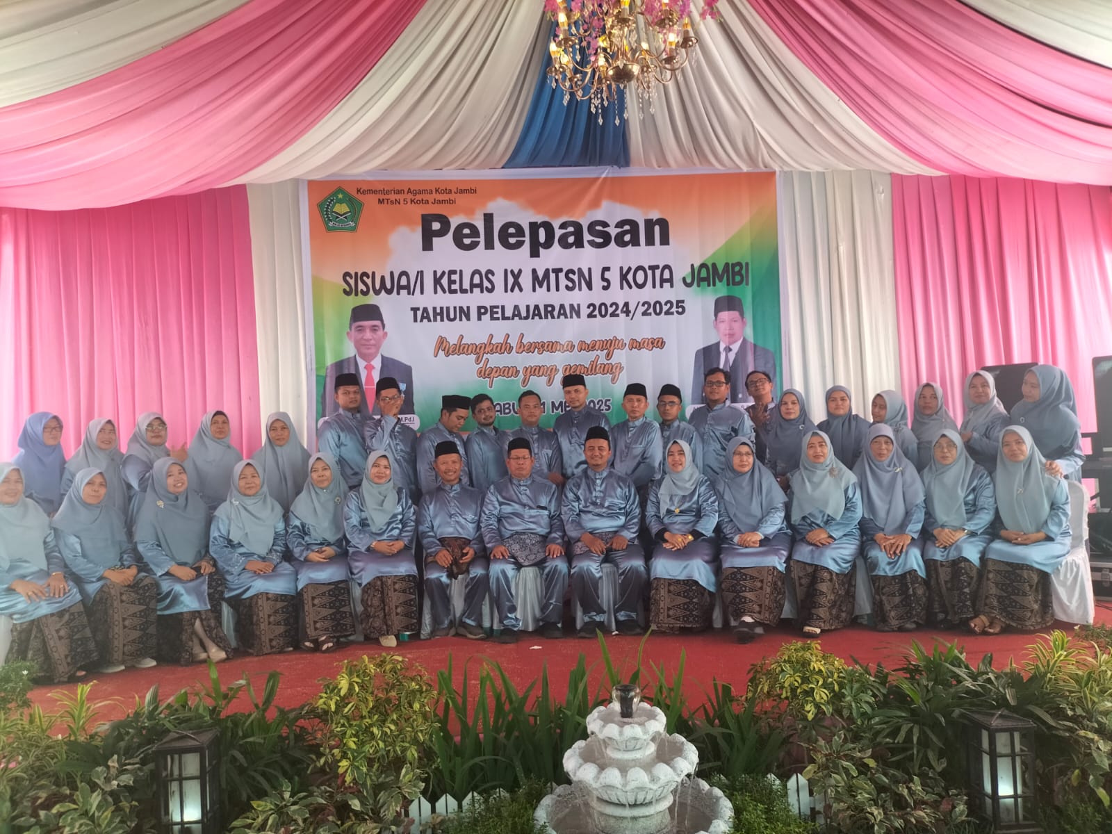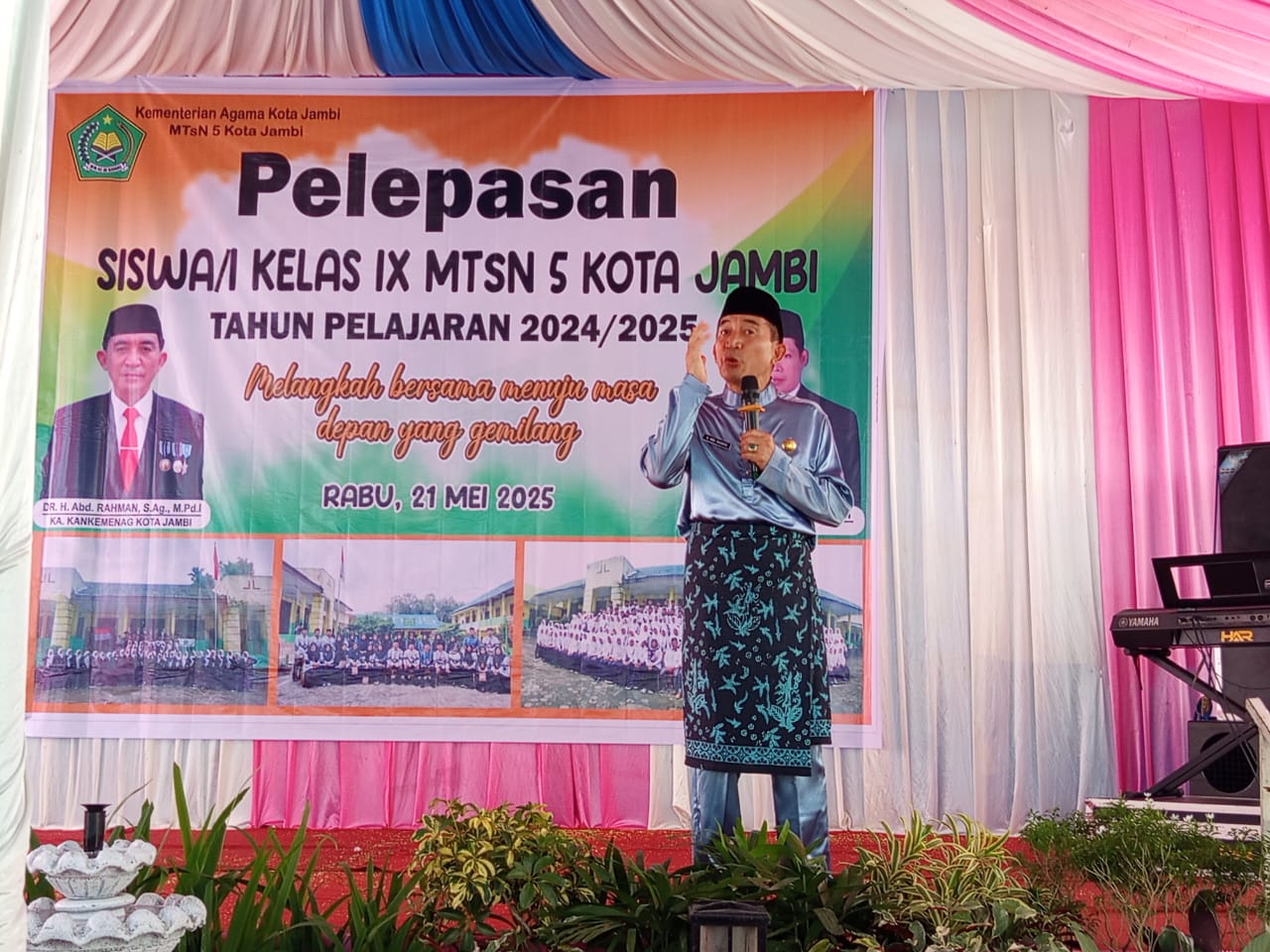 Kota Jambi,Rabu 21 Mei 2025, Bertempat dihalaman MTsN 5 Kota Jambi berlangsug kegiatan Pelepasan siswa/i kelas IX MTsN 5 Kota Jambi,kegiatan ini diikuti oleh seluruh keluarga besar MTsN 5 Kota Jambi serta dihadiri oleh berbagai jajaran dilingkungn Kementerian Agama kota jambi dan lintas Sektoral .