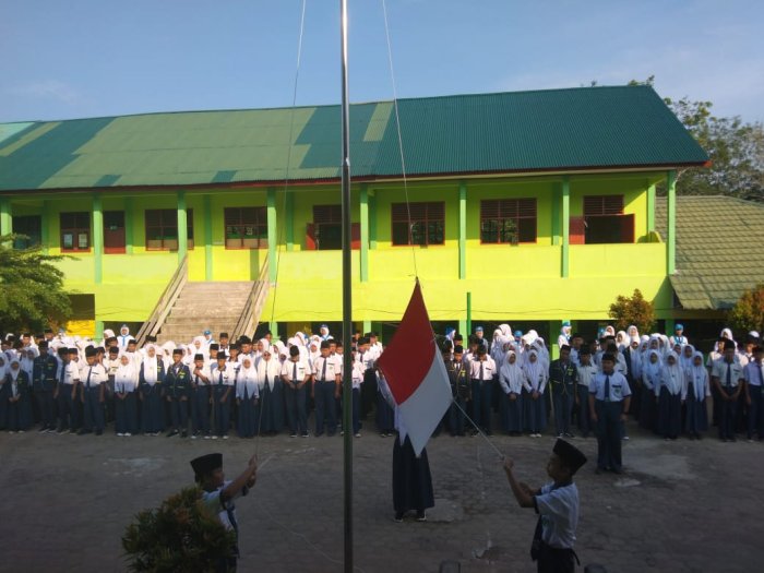 Upacara Senin pagi ini merupakan agenda rutin yang dilaksanakan setiap pekan di MTsN 5 Kota Jambi. Selain sebagai bentuk disiplin, kegiatan ini juga menjadi sarana untuk menyampaikan pesan-pesan moral dan motivasi kepada seluruh warga sekolah. Dengan adanya penekanan pada pentingnya menjaga lisan, diharapkan seluruh siswa semakin sadar akan dampak ucapan dan mampu menciptakan suasana belajar yang kondusif dan harmonis.( HUmas MTsN 5 Kota Jambi ).