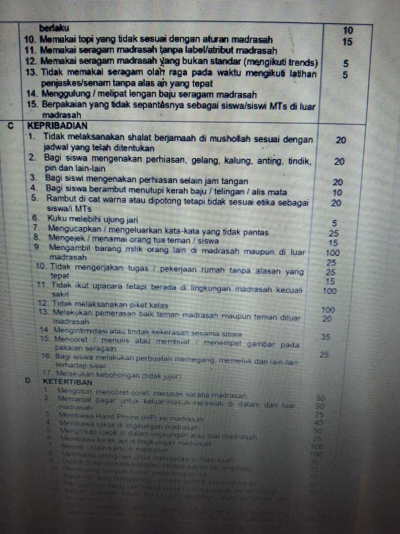 Tata Tertib Madrasah